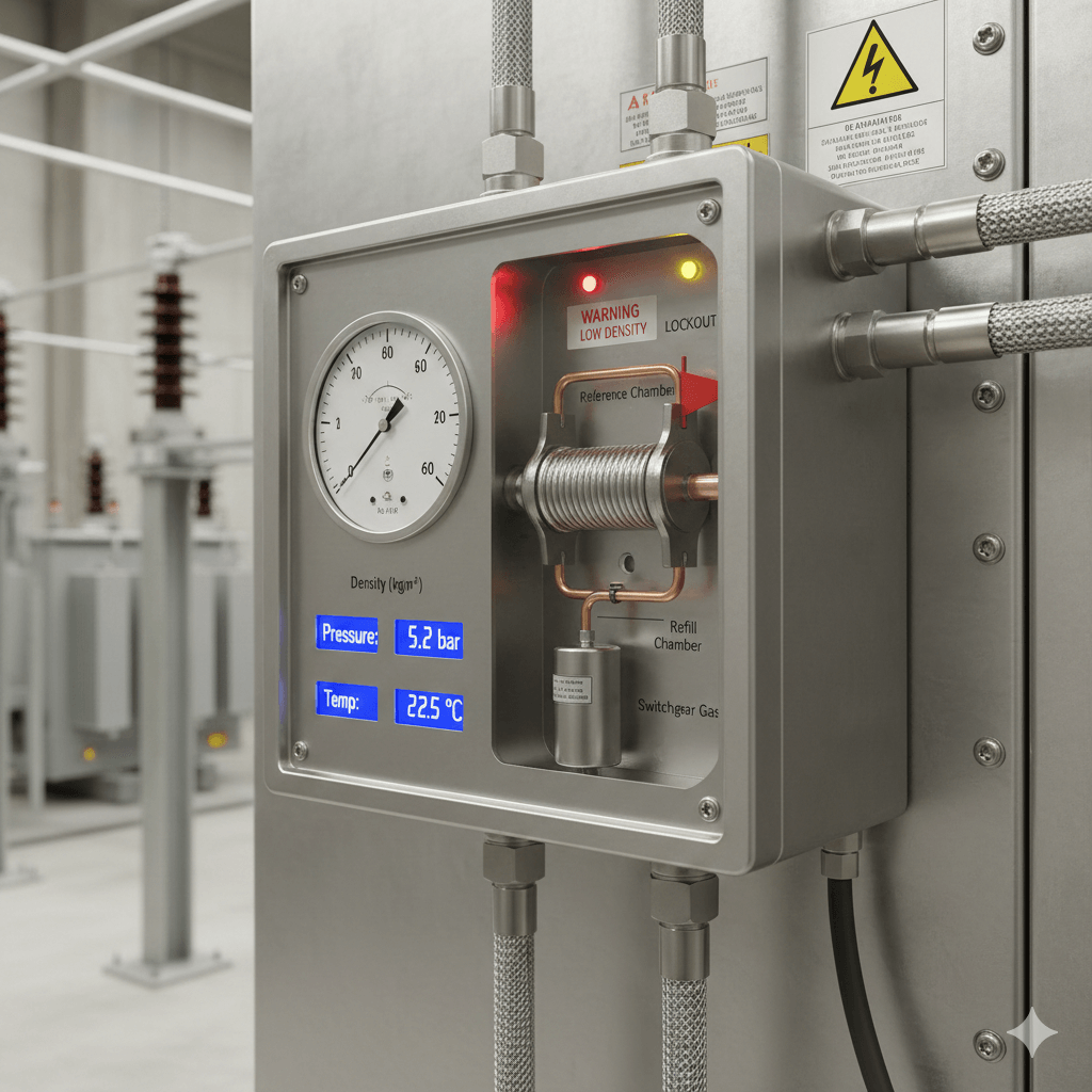 The Gas Density (GD) System continuously measures the density of gases—such as SF₆, used in electrical switchgear—to ensure optimal performance and safety. It monitors changes in gas density, pressure, and temperature in real time, triggering alarms if values fall outside safe limits. This automation helps prevent equipment failure, supports leak detection, and ensures regulatory compliance in high-voltage applications.